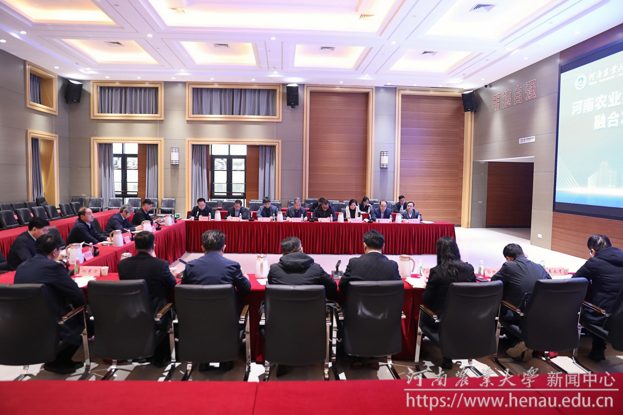 学校有关职能部门、融合发展专班各工作组、联合研究生院筹建办负责人参加会议。会前,与会人员实地调研了中国现代农业联合研究生院筹建办及各学部,查看了办公环境与设施条件建设情况。