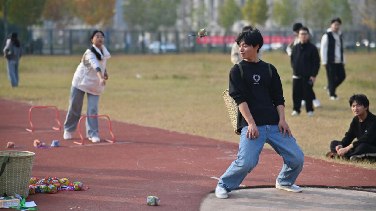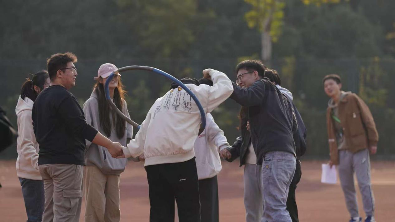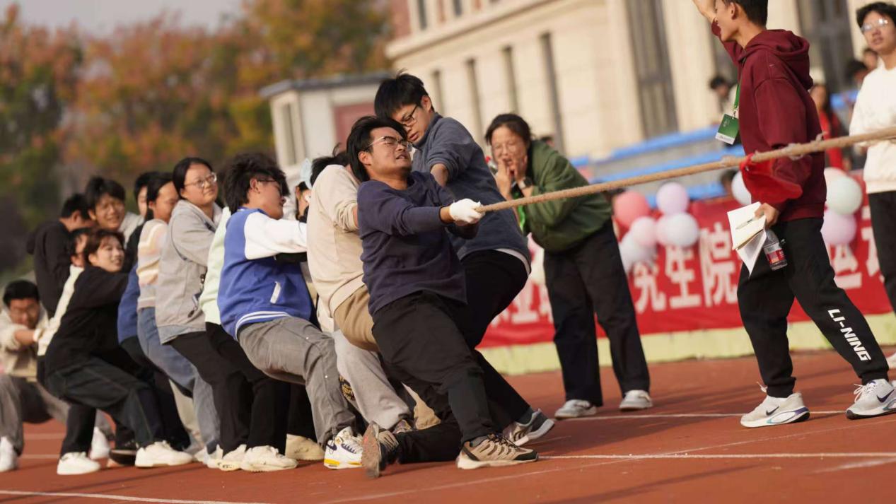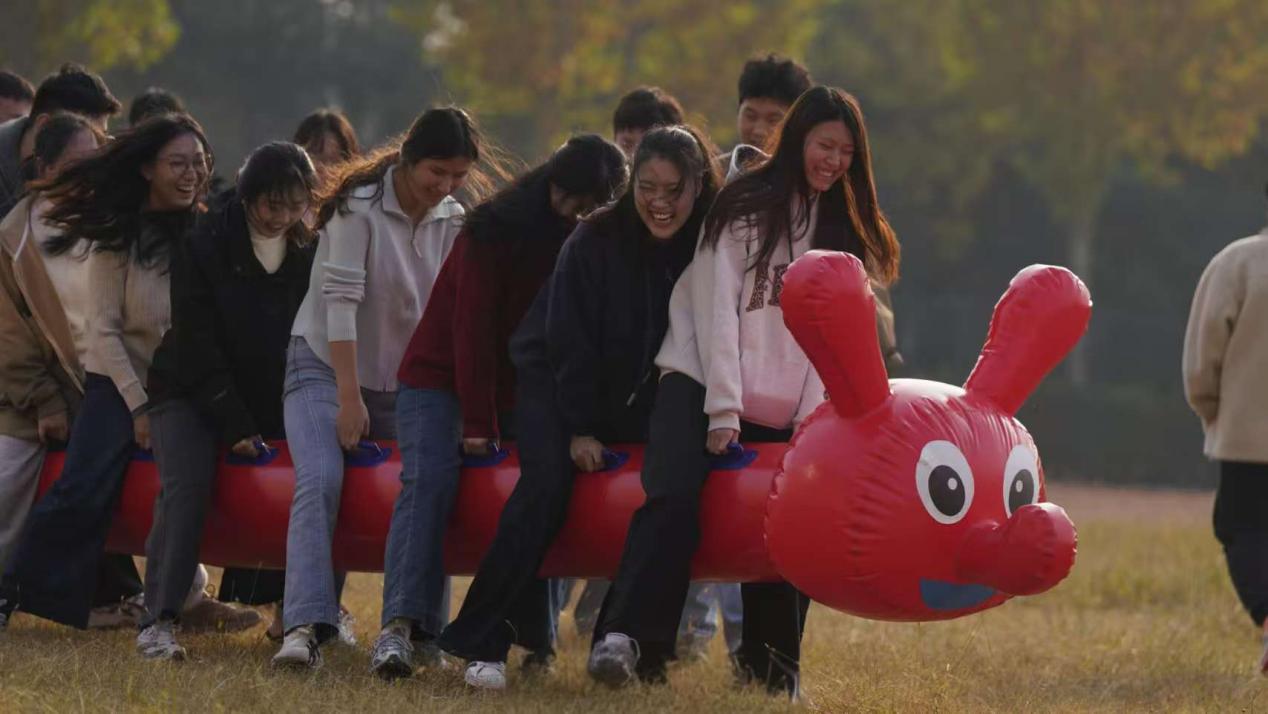 运动会设置了“拔河比赛”“不倒森林”“珠行千里”等6项团体项目。比赛以班级、学部为单位展开角逐,赛场上,不见个人的单打独斗,唯有团队间的策略博弈和默契配合。专注的眼神、会心的微笑与及时的援手,为每一次发力注入了温暖而坚定的力量。青春的活力与集体的智慧在龙子湖畔交织,绘就成一幅动人的画卷。