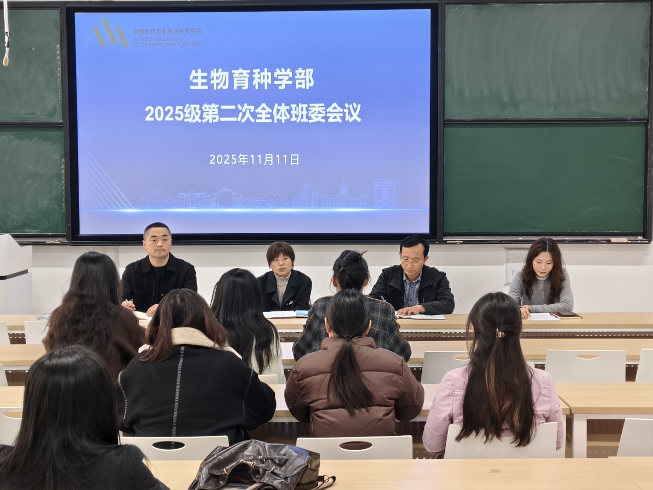本网讯(通讯员 赵凯)11月11日下午,联合研究生院生物育种学部在龙子湖校区第二实验楼召开了2025级第二次全体班委会议。农学院副院长兼学部副主任李浩川,学部副主任王春丽,分管教学王娅茹老师及辅导员赵凯出席了会议,2025级全体班委及联合研究生院事务中心管理服务部骨干参加了会议。