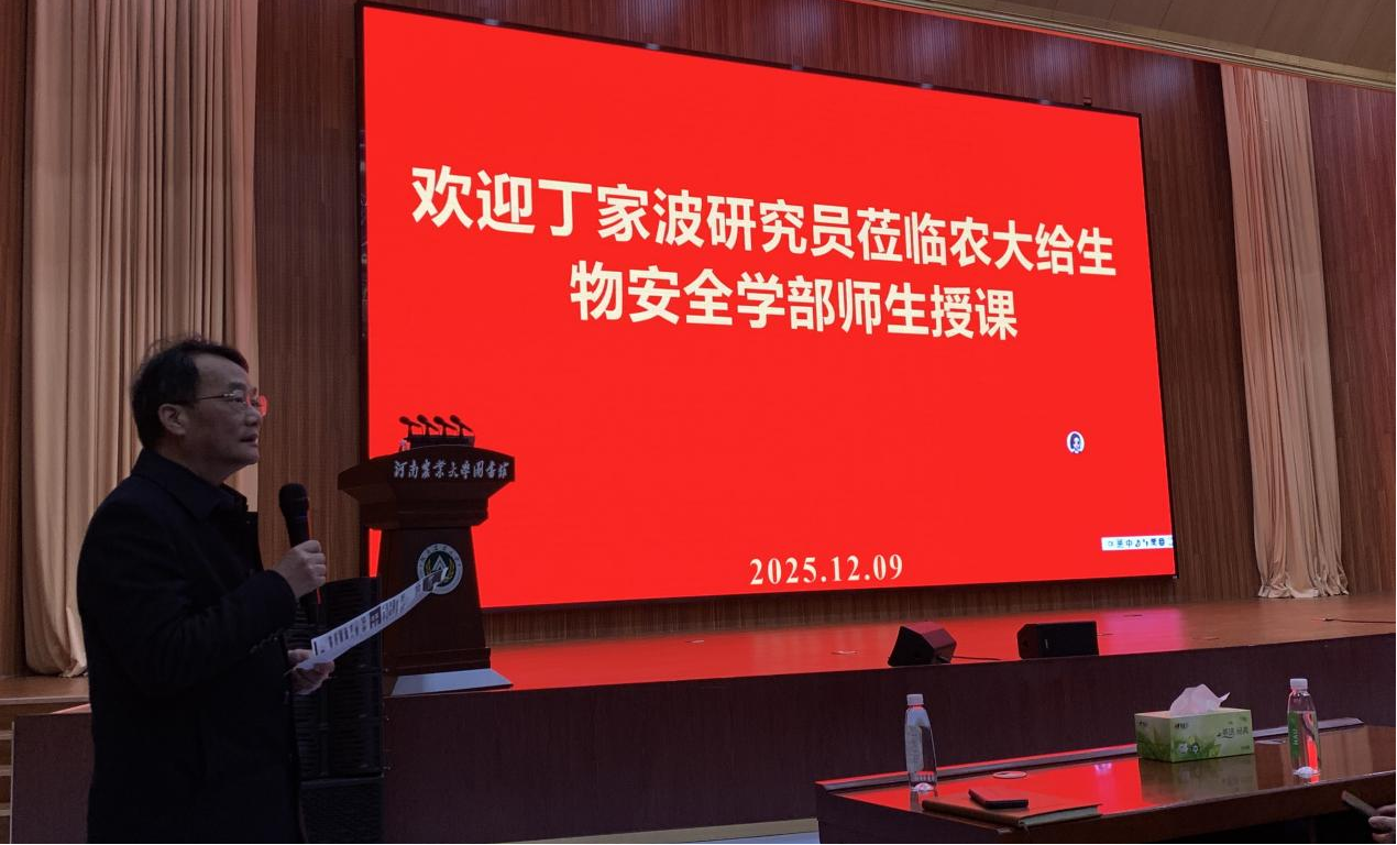 (通讯员:丁小丫、刘洋)12月9日下午,中国农业科学院北京畜牧兽医研究所丁家波研究员应邀在河南农业大学龙子湖校区图书馆报告厅,为生物安全学部师生作报告,会议由生物安全学部执行主任张龙现教授主持。