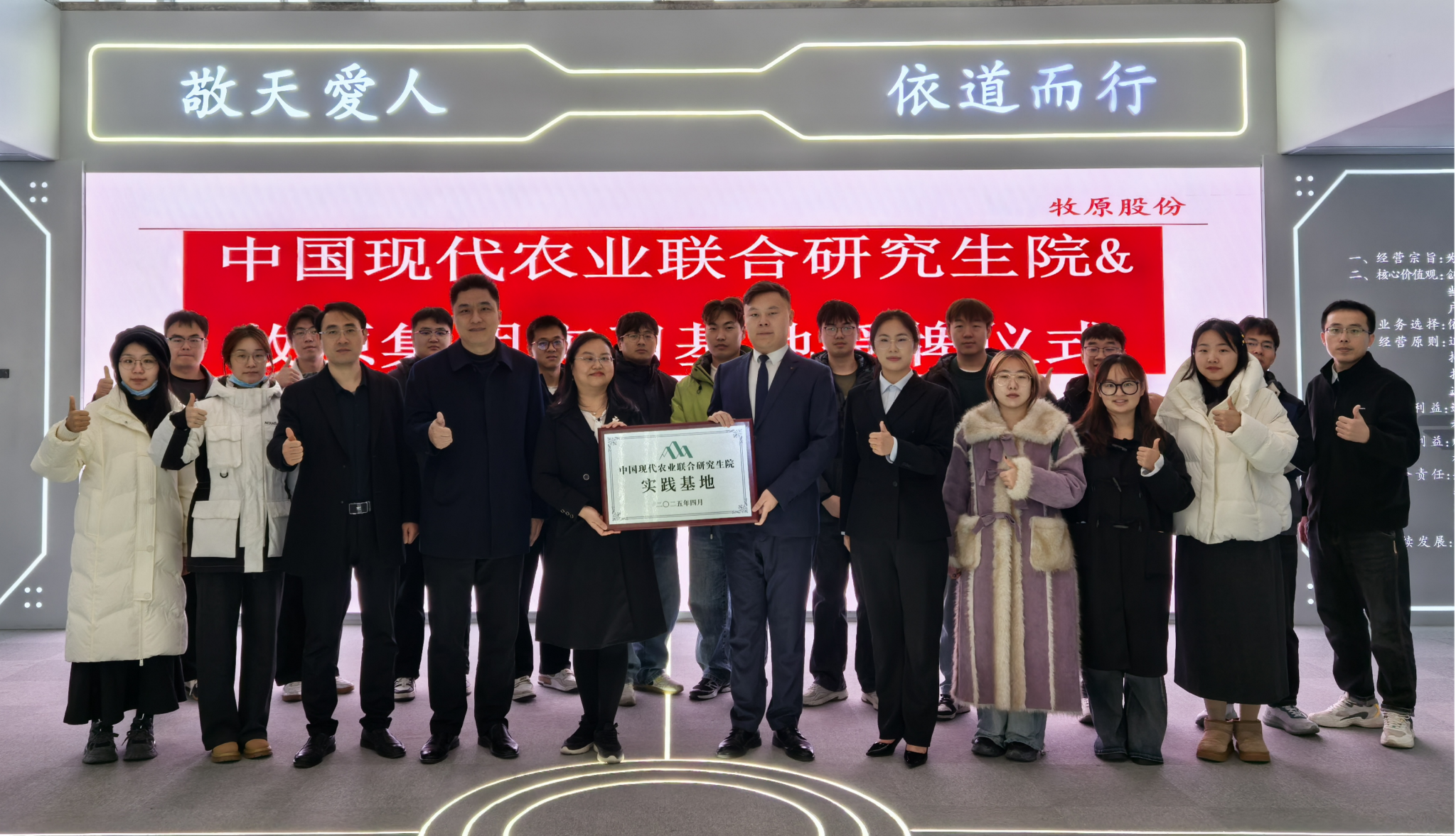 代莉首先向牧原集团代表授予了“中国现代农业联合研究生院实践基地”的牌匾,并向牧原集团为联合研究生院学生提供实践学习的机会和一直以来对农大学子的支持表示感谢。