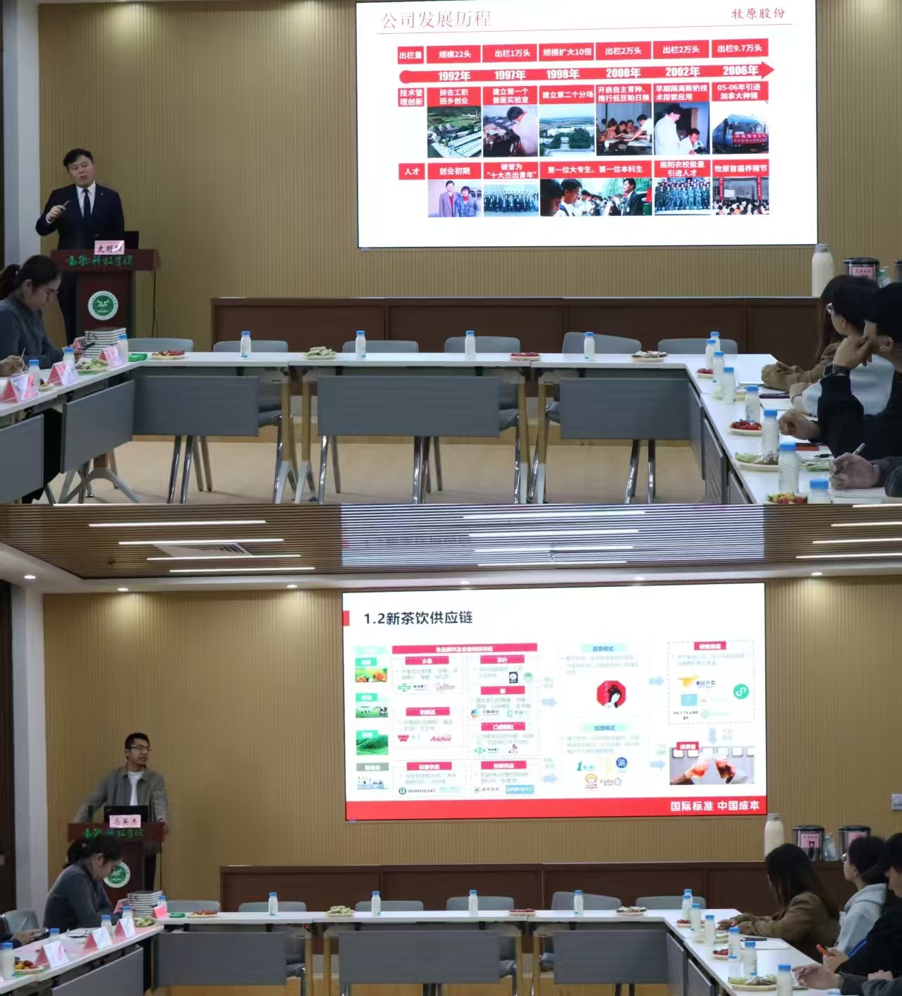 活动中,牧原集团、蜜雪大咖国际企业负责人分别围绕行业发展前沿、人才需求标准、科研方向适配、职业规划指导等内容作分享,为同学们科研选题、就业发展提供了务实参考与精准指引。
